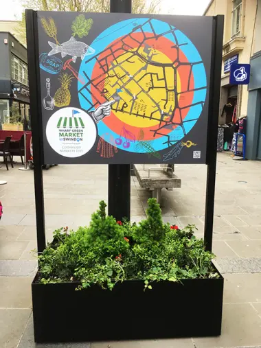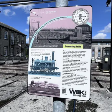 Creative producer of the 2-mile heritage trail of 30+ interpretation panels at key locations around Swindon's Railway Village and former GWR Works. Work included historical and image research, community engagement, graphic design, map-making, writing content and print management. Street banners; stylised route map; way-finding cast bronze pavement plaques; printed map and guide; and curating online guide content.