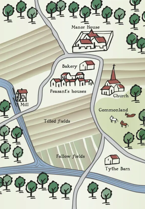 Stylised map illustrates the manorial system in the museum's Medieval Swindon gallery.