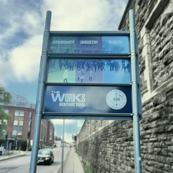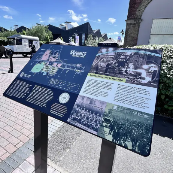 Creative producer of the 2-mile heritage trail of 30+ interpretation panels at key locations around Swindon's Railway Village and former GWR Works. Work included historical and image research, community engagement, graphic design, map-making, writing content and print management. Street banners; stylised route map; way-finding cast bronze pavement plaques; printed map and guide; and curating online guide content.